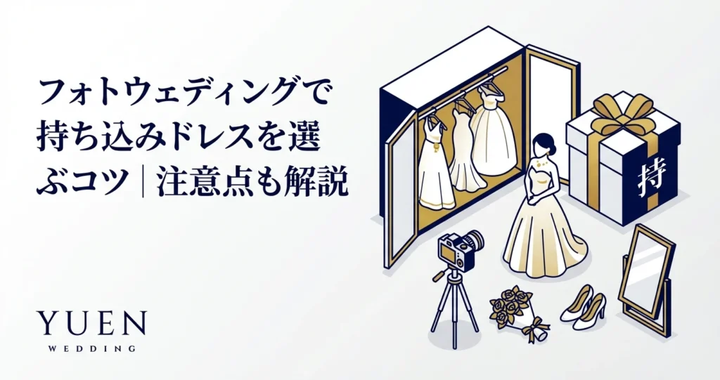 一生の思い出となるフォトウェディング。その大切な一日を彩るドレス選びは、フォトウェディング準備の中でも特に重要なポイントです。フォトウェディングの全体像については「フォトウェディング完全ガイド2026年版」をご覧ください。お気に入りのドレスを纏うことで、気分も高まり、より自然で美しい表情を写真に残すことができるでしょう。