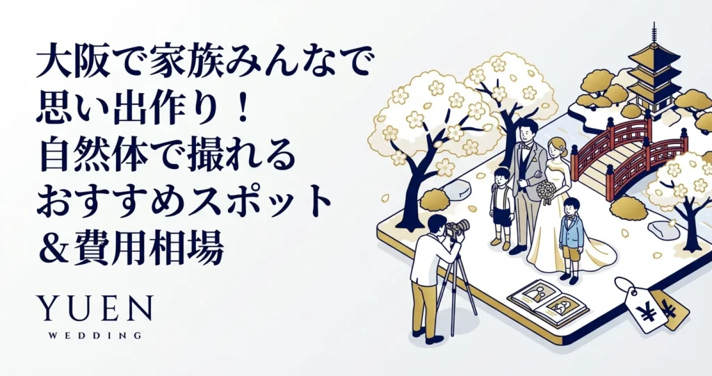 人生の節目や記念日に、家族みんなで素敵な思い出を作りませんか?フォトウェディングの基本についてはフォトウェディング完全ガイド2026年版も参考にしてください。大阪は、フォトウェディングにぴったりの魅力的なロケーションが豊富です。歴史的な建造物から自然豊かな公園、都会的な街並みまで、様々な背景で思い出の一枚を撮影できます。