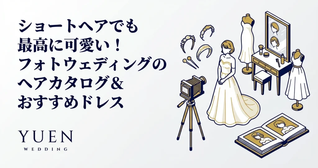 この記事では、ショートヘアの花嫁さんの魅力を最大限に引き出す、様々なヘアアレンジと、それぞれのヘアスタイルに合うウェディングドレスの選び方、さらにヘアアクセサリーの活用方法まで、詳しくご紹介します。フォトウェディングの基礎知識については「フォトウェディング完全ガイド2026年版」もあわせてご覧ください。