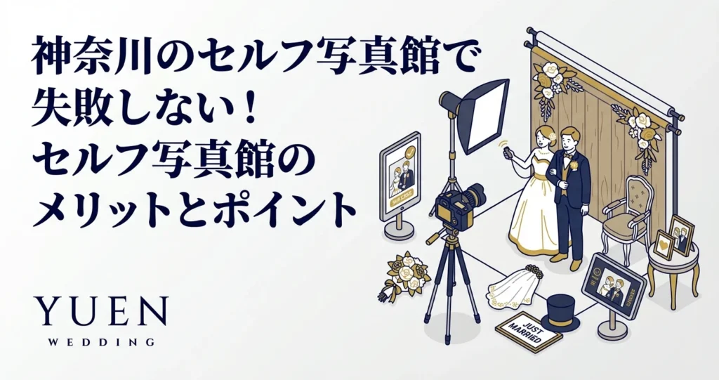 神奈川からアクセスしやすいセルフ写真館をお探しなら、YUEN WEDDINGの東京/六本木店もおすすめです。プロ仕様のスタジオで衣装着替え放題・追加料金なし。大阪/梅田・名古屋/栄にも店舗があります。和装は和 -nagi-(東京/恵比寿)で撮影可能です。