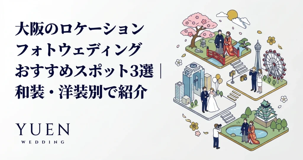 この記事では、大阪でフォトウェディングを検討されているお二人に向けて、和装・洋装別のおすすめロケーションスポットや、フォトウェディングを成功させるためのポイントをご紹介します。和装をお考えの方は和装ウェディング衣装完全ガイドもご覧ください。