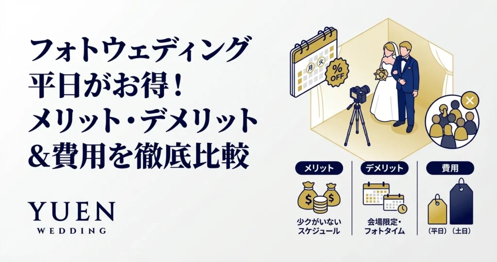 \n\n\n\n費用面でのメリットを最大限に活かし、準備を万全にすることで、平日でも満足度の高いフォトウェディングを実現できるでしょう。