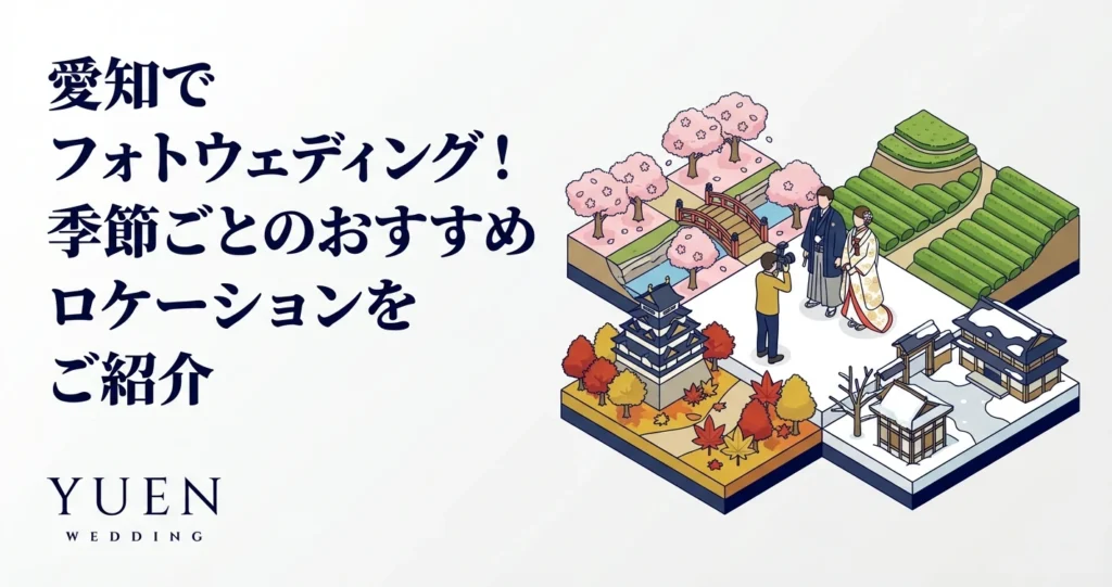 この記事では、愛知県の魅力的なフォトウェディングロケーションを季節ごとにご紹介し、ロケーション選びのポイントやフォトスタジオ選びのポイントなども詳しく解説していきます。