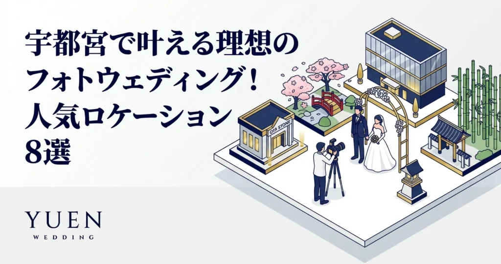 次の章では、宇都宮で人気のフォトウェディングロケーションを8つご紹介します。フォトウェディング全般についてはフォトウェディング完全ガイド2026年版もあわせてご覧ください。それぞれのロケーションの特徴や魅力を詳しく解説しますので、ぜひ参考にしてください。