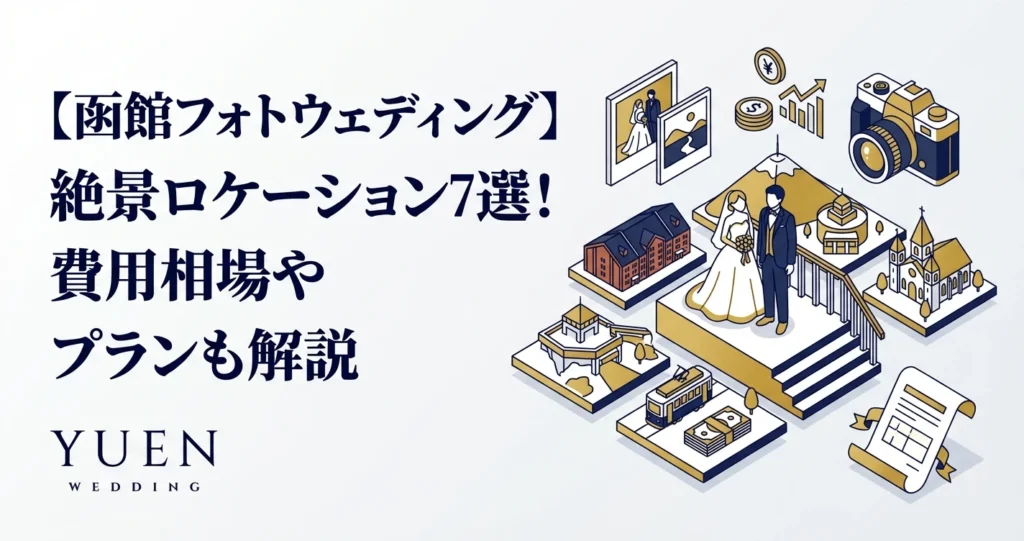 函館ならではのロマンチックな雰囲気の中で、特別な思い出を作りましょう。和装・洋装どちらにも合う風景が多いのも魅力の一つです。フォトウェディング全般についてはフォトウェディング完全ガイド2026年版もあわせてご覧ください。この記事では、函館フォトウェディングにおすすめのロケーションや費用相場、プランの選び方、準備の流れなど、役立つ情報を詳しく解説していきます。
