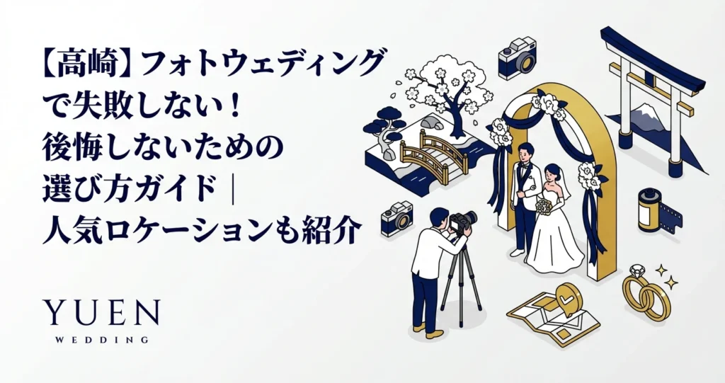 高崎でのフォトウェディングは、一生の宝物になるはずです。フォトウェディング全般の準備についてはフォトウェディング完全ガイド2026年版もあわせてご覧ください。この記事が、最高の思い出を作るための一助となれば幸いです。素敵なフォトウェディングを実現し、幸せな未来へと繋げていきましょう。
