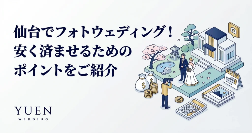この章では、仙台でフォトウェディングを検討されている方に向けて、素敵な思い出を形にするための情報を提供いたします。費用相場については「フォトウェディング費用・相場完全ガイド」もご覧ください。費用を抑えるためのコツや、仙台ならではの魅力的な撮影スポット、準備のステップなど、役立つ情報が満載です。理想のフォトウェディングを仙台で叶えるため、ぜひ参考にしてみてください。