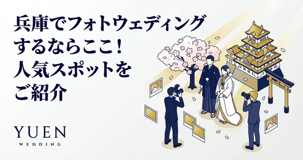 お二人の好みに合わせて、とっておきのロケーションを見つけ、一生の宝物となる写真を残しましょう。費用相場については「フォトウェディング費用・相場完全ガイド」もご覧ください。これから、兵庫県でフォトウェディングを検討されている方のために、様々なロケーションや、フォトウェディングスタジオの選び方など、役立つ情報をご紹介します。