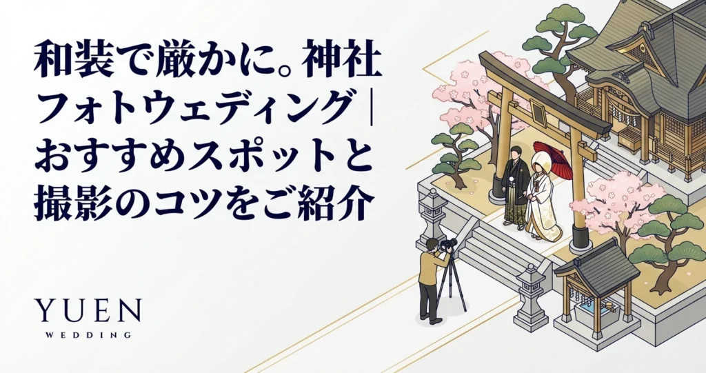 古き良き日本の伝統と荘厳な雰囲気が漂う神社。近年、そんな神社で和装姿での写真撮影を行う「神社フォトウェディング」の人気が高まっています。フォトウェディングの基本は「フォトウェディング完全ガイド2026年版」で解説しています。厳かな雰囲気の中で、白無垢や色打掛といった美しい和装に身を包み、永遠の愛を誓う。それは、一生忘れられない特別な思い出となるでしょう。