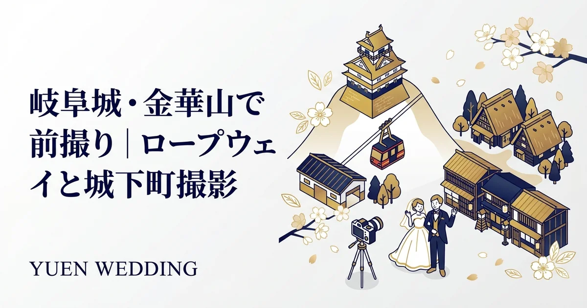 岐阜市の前撮りロケーション10選|金華山・長良川 岐阜市で前撮りを検討中のカップルに向けて、金華山・長良川エリアを中心としたおすすめロケーションを10スポット厳選して紹介します。岐阜城を望む絶景から、...
