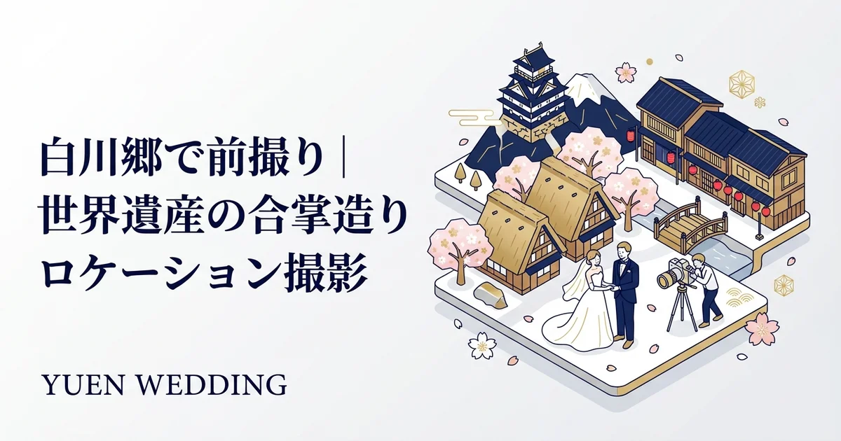 白川郷で前撮り|世界遺産の合掌造りロケーション撮影 白川郷は、1995年にユネスコ世界遺産に登録された合掌造り集落です。日本の原風景とも言える美しい景観の中で、唯一無二の前撮り写真を残せる人気のロケー...