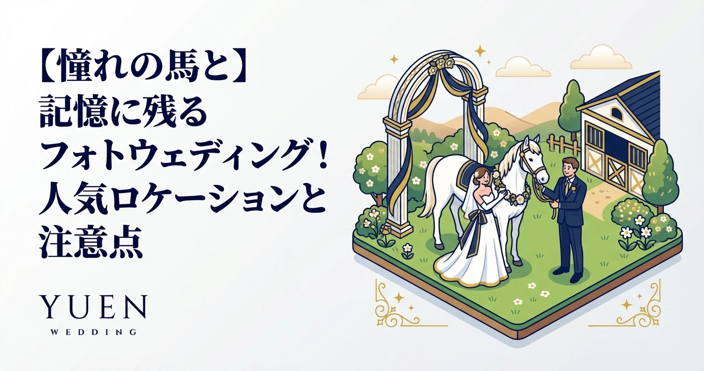 1. はじめに:馬とのフォトウェディングの魅力とは お二人の大切な瞬間を写真に残すフォトウェディングは、近年多様化しています。中でも「馬とのフォトウェディング」は、特別な思い出を刻むことができる選択肢...