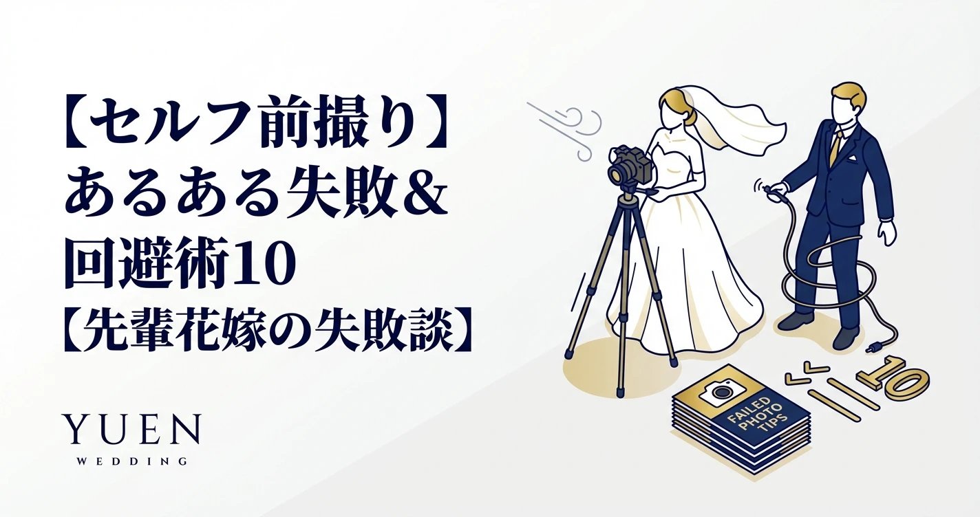 セルフウェディングフォトスタジオ「yuen wedding」です。 人気上昇中のセルフ前撮り(セルフ前撮り完全ガイド参照)。先輩花嫁によると、セルフ前撮りには実は誰もが陥る可能性のある「あるある失敗」...
