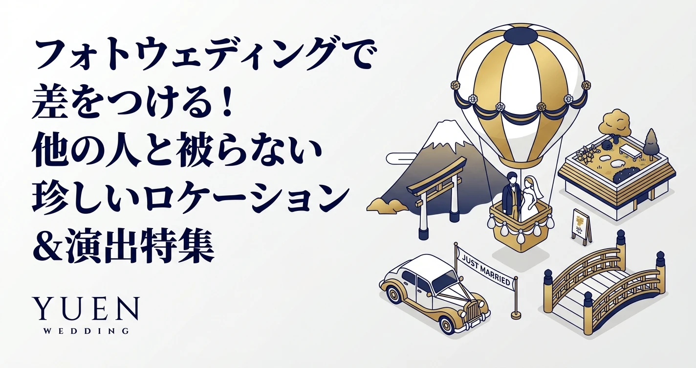 1. はじめに:フォトウェディングの魅力とロケーション撮影の需要 人生の節目となる結婚式。近年では、従来の結婚式に加え、結婚式の代わりに写真撮影を行う「フォトウェディング」を選択するカップルが増えてい...