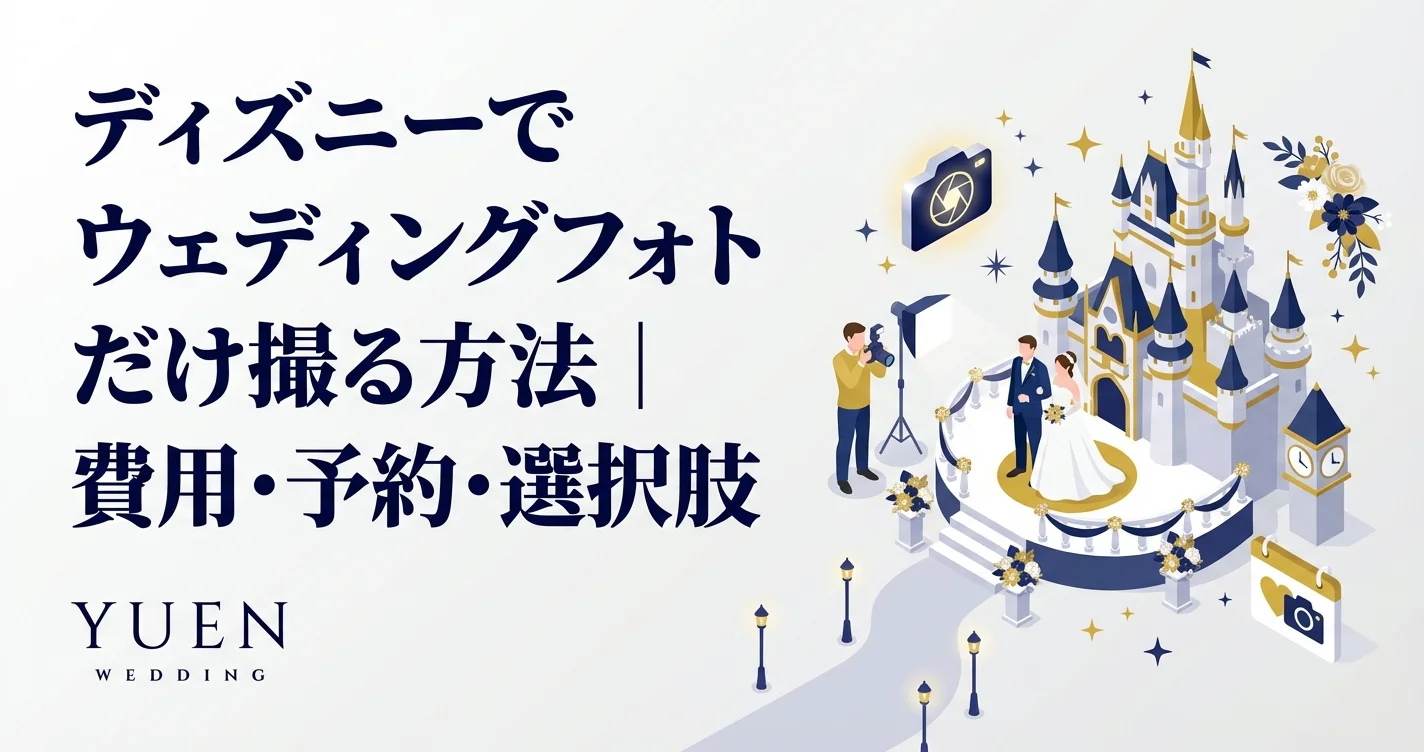 ディズニーでウェディングフォトだけ撮りたい方へ。公式リゾート内撮影の条件、ディズニードレスで撮影できるスタジオ、費用相場まで徹底解説。夢のディズニーウェディングを叶える方法をご紹介。...