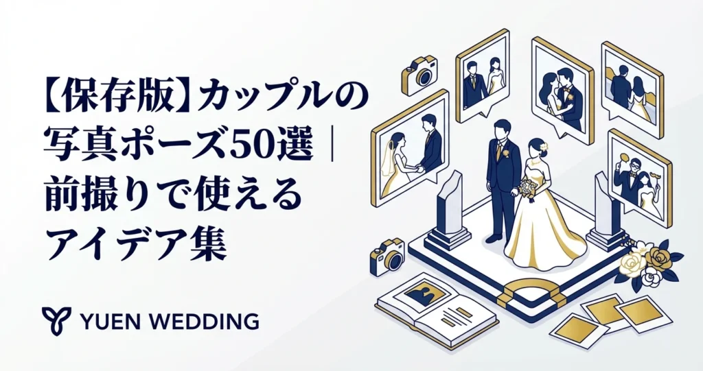 この記事では、前撮りやフォトウェディングで使えるカップルの写真ポーズ50選を、定番・ロマンチック・おしゃれ・和装・洋装・ユニークの6カテゴリに分けて紹介します。撮影当日のポーズ指示書としても活用してください。