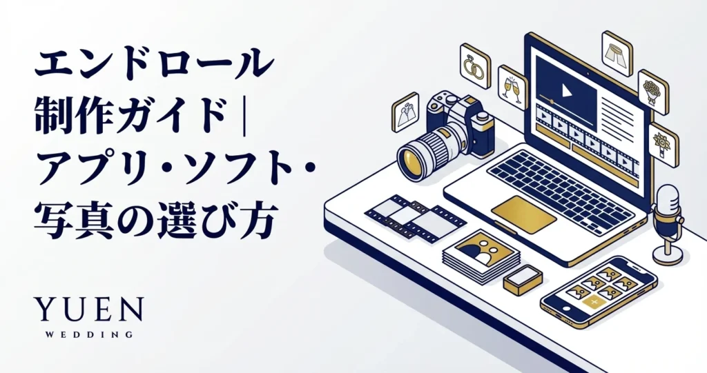 結婚式のエンドロールは、ゲスト一人ひとりへの感謝を伝える大切な演出です。披露宴の最後を飾るエンドロールだからこそ、心に残る映像に仕上げたいもの。この記事では、エンドロールの制作方法やおすすめアプリ・ソフト、ゲスト名の順番ルール、BGM選びまで徹底解説します。自作と外注どちらが向いているか迷っている方にも、判断のポイントをお伝えします。