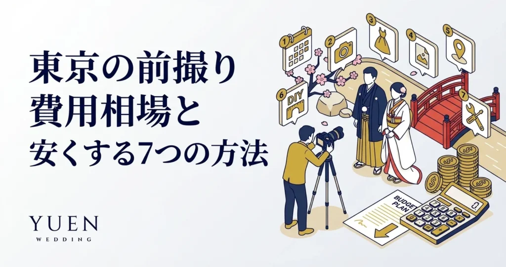 この記事では、東京の前撮り費用相場をスタジオ・ロケーション別、衣装別に整理し、費用を抑える具体的な方法を7つ紹介する。予算に合ったプランを見つけるための参考にしてほしい。
