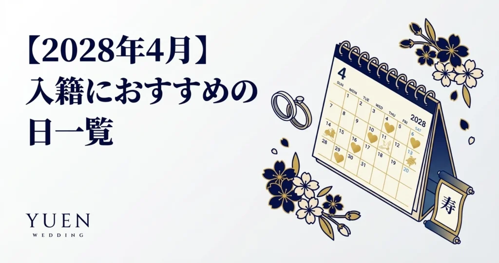 2028年4月の入籍におすすめの日一覧|大安・吉日カレンダー