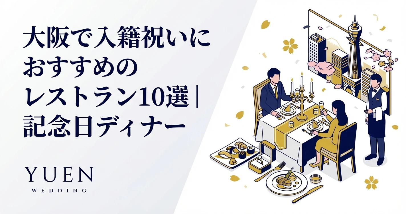 大阪で入籍祝いのレストランを探しているあなたへ。婚姻届を提出した特別な日を、とっておきのディナーでお祝いしませんか。 入籍日は二人だけの大切な記念日。結婚式とは違い、二人きりで静かに祝えるのが入籍祝い...
