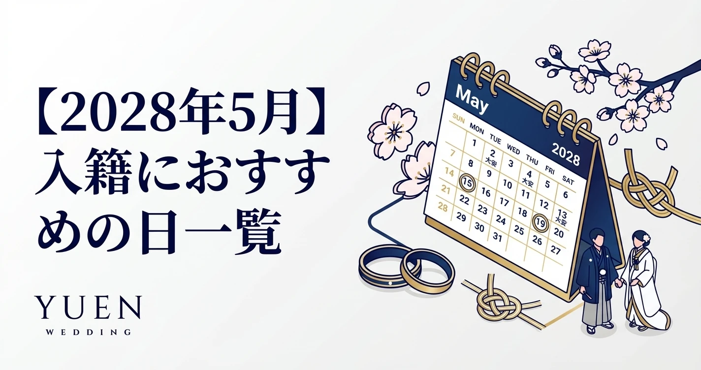 2028年(令和10年)5月に入籍を考えているカップルに向けて、大安や一粒万倍日、天赦日などの縁起の良い日を一覧でまとめました。5月はゴールデンウィークの大型連休があり、「連休中にふたりで婚姻届を提出...