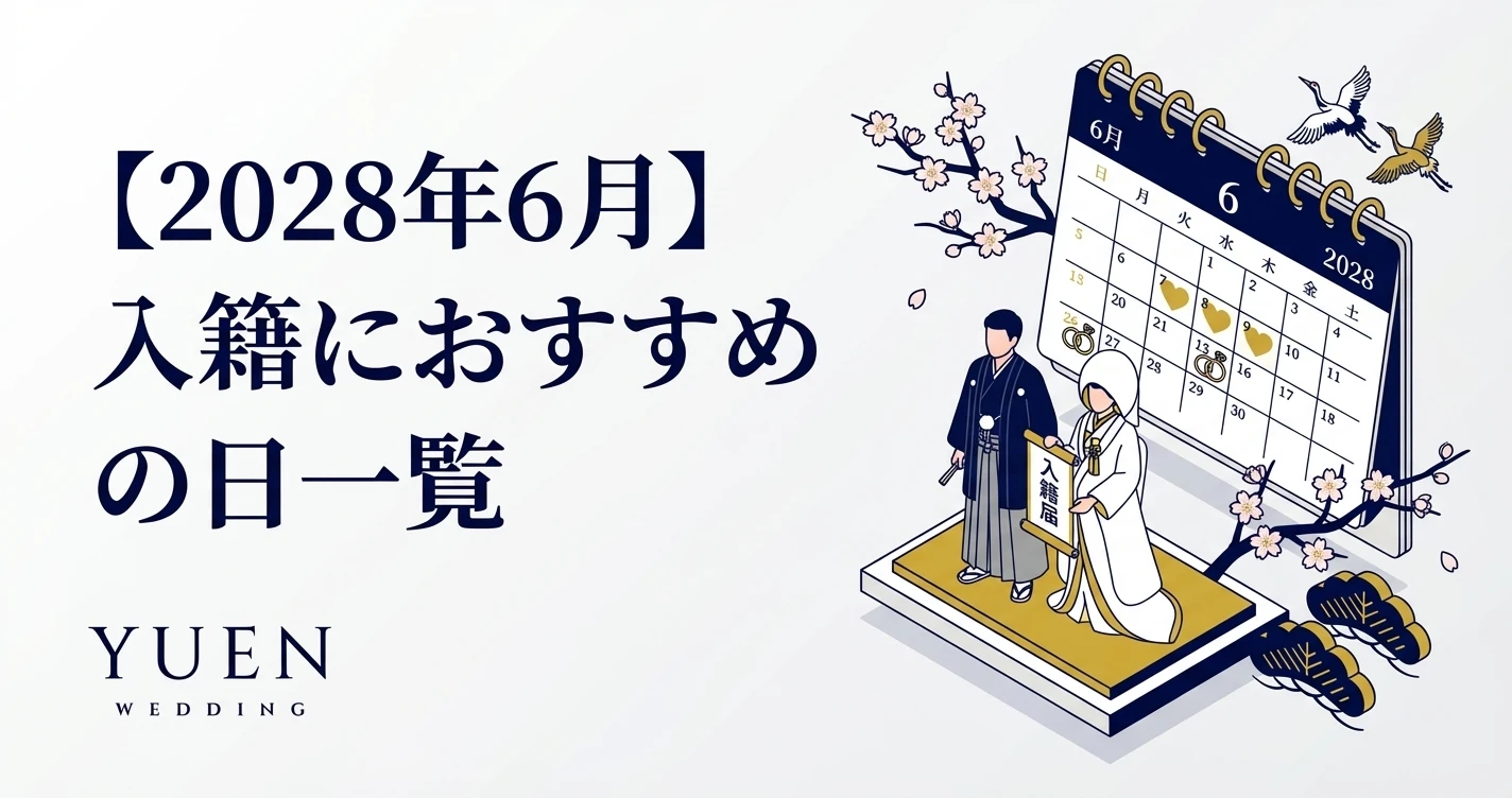 2028年(令和10年)6月に入籍を考えているカップルに向けて、大安や一粒万倍日などの縁起の良い日を一覧でまとめました。6月は「ジューンブライド(June Bride)」として結婚にまつわる縁起の良い...