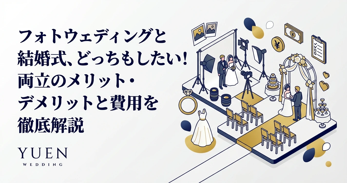 1. はじめに:フォトウェディングと結婚式、どちらも叶えたい方のために 人生の大きな節目となる結婚。その記念として、写真に残す「フォトウェディング」と、大切な人たちと祝福を分かち合う「結婚式」、どちら...