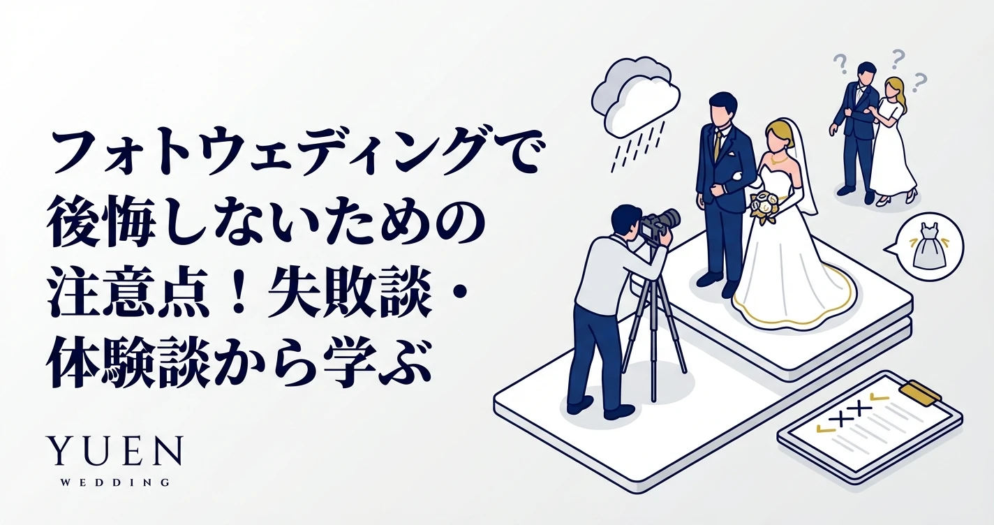 1. はじめに:フォトウェディングの魅力と注意点 人生の晴れ舞台である結婚式。近年では、従来の結婚式に加えて、写真撮影に特化した「フォトウェディング」を選択するカップルが増えています。 フォトウェディ...