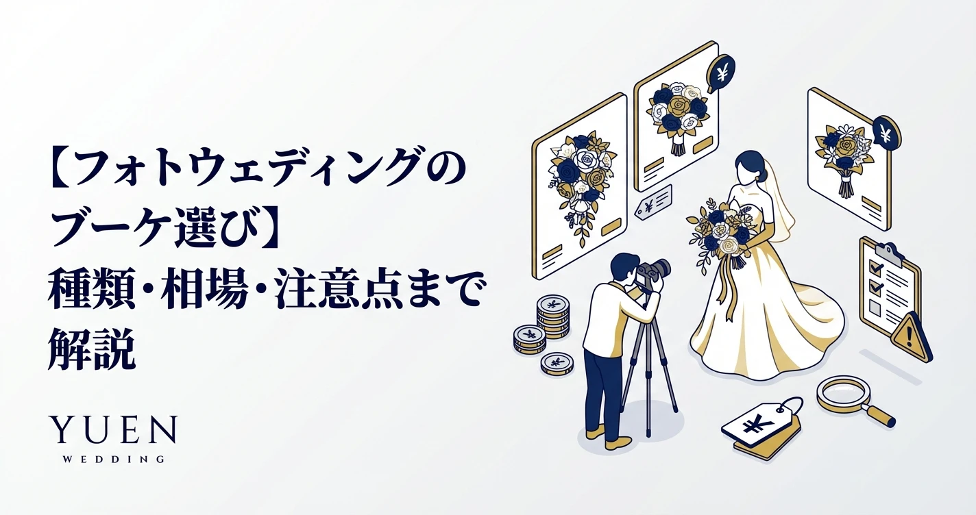 1. はじめに:フォトウェディングとブーケの重要性 一生の思い出となるフォトウェディング。美しいドレスやロケーションはもちろん、ブーケ選びも大切な要素です。フォトウェディングの基本については「フォトウ...