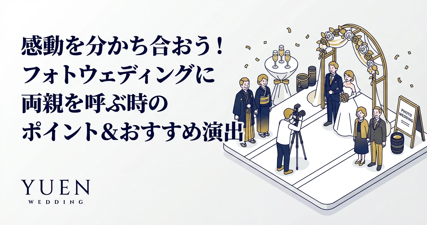 1. はじめに:フォトウェディングに両親を呼ぶメリット フォトウェディングは、写真を通して一生の思い出を形に残す特別な機会です。フォトウェディングの基本については「フォトウェディング完全ガイド2026...