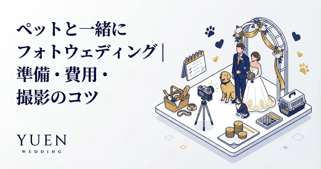 大切なペットと一緒にウェディングフォトを撮影したい方へ。ペット撮影可能なスタジオの選び方、必要な準備、費用相場、撮影のコツまで詳しく解説します。