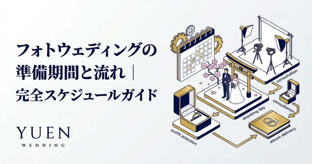 フォトウェディングの準備期間は平均2ヶ月。スタジオ選びから撮影当日、写真納品までの流れを時系列で解説。美容準備のスケジュールや持ち物リストも紹介します。