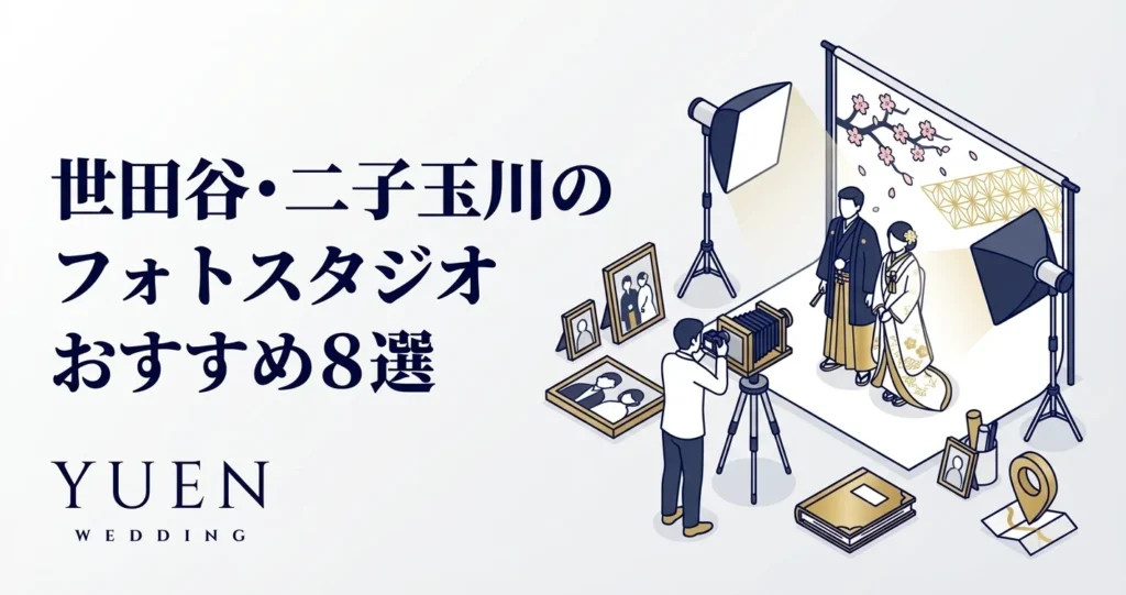 この記事では、世田谷区内のフォトスタジオを8か所に厳選し、料金・アクセス・撮影スタイルを一覧で比較する。東京全体でのスタジオ探しは東京のウェディングフォト完全ガイドも参考にしてほしい。