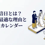 天赦日は「天が万物の罪を赦す日」。過去の失敗やわだかまりをリセットし、新しいスタートを切るのに最適です。結婚という人生の大きな節目にふさわしい、縁起の良い日です。