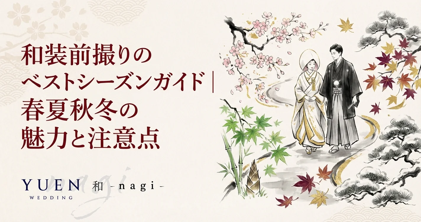 和装前撮りのベストシーズンを徹底解説。春の桜、秋の紅葉、夏・冬のメリット・デメリットから、季節別おすすめロケーション、予約時期まで完全ガイド。...