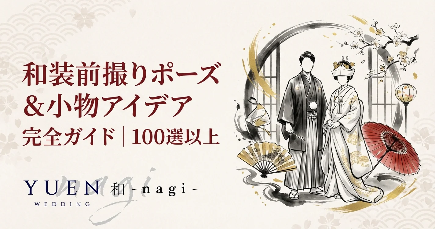 和装前撮りのポーズと小物アイデアを100選以上紹介。定番・面白い・新郎向けポーズから扇子・番傘・習字などの小物活用術まで。撮影指示書のコツも解説。...