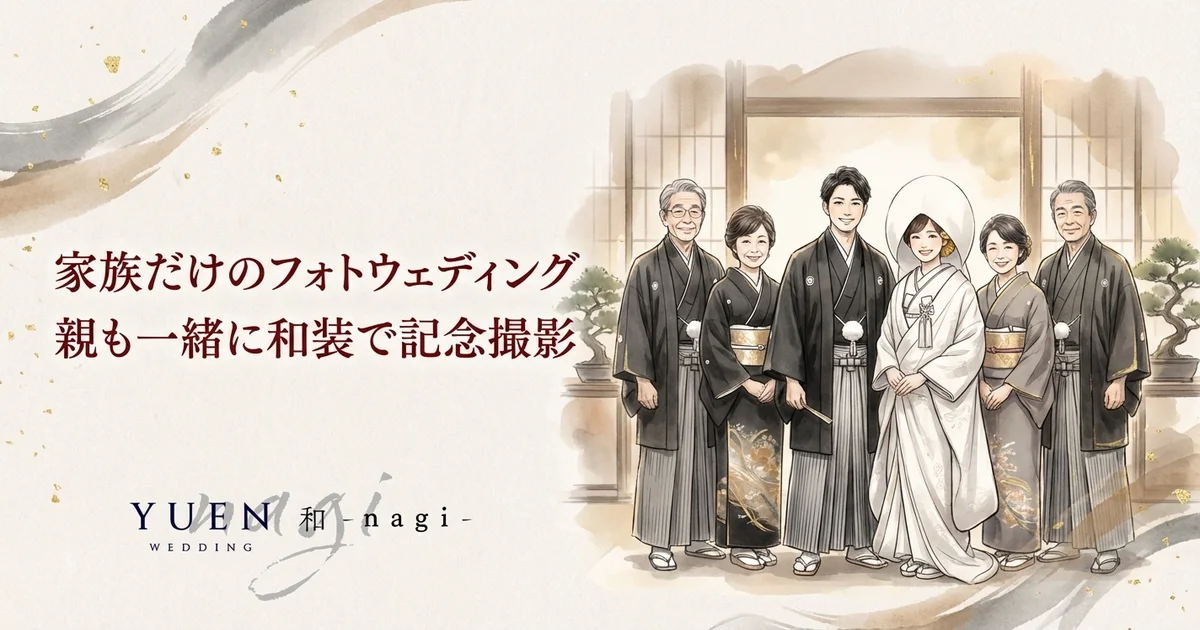 和装での撮影なら、日本の婚礼衣装ならではの格式と美しさが加わり、家族全員にとって忘れられない時間になるはずです。結婚式をしないという選択は、家族の絆が薄れることを意味しません。むしろ家族だけの時間だからこそ、一人ひとりの表情がしっかりと写真に刻まれます。大切な人だけに囲まれた、世界で一番小さくて温かいウェディング。それが家族だけのフォトウェディングです。