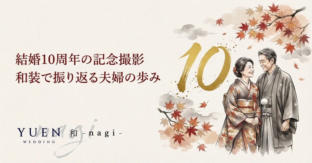 10年前の結婚式を思い出す方、結婚式をしなかった方、いずれにとっても、結婚10周年は特別な節目です。この記事では、結婚10周年の記念撮影として和装フォトウェディングを選ぶ魅力と、具体的な段取りを紹介します。