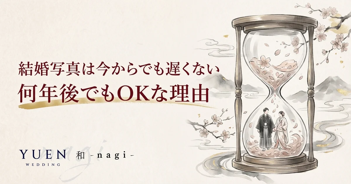 結婚写真は何年後でも撮れます。和-nagi-の和装フォトウェディングは衣装・着付け込みで34,800円から。詳細はこちら