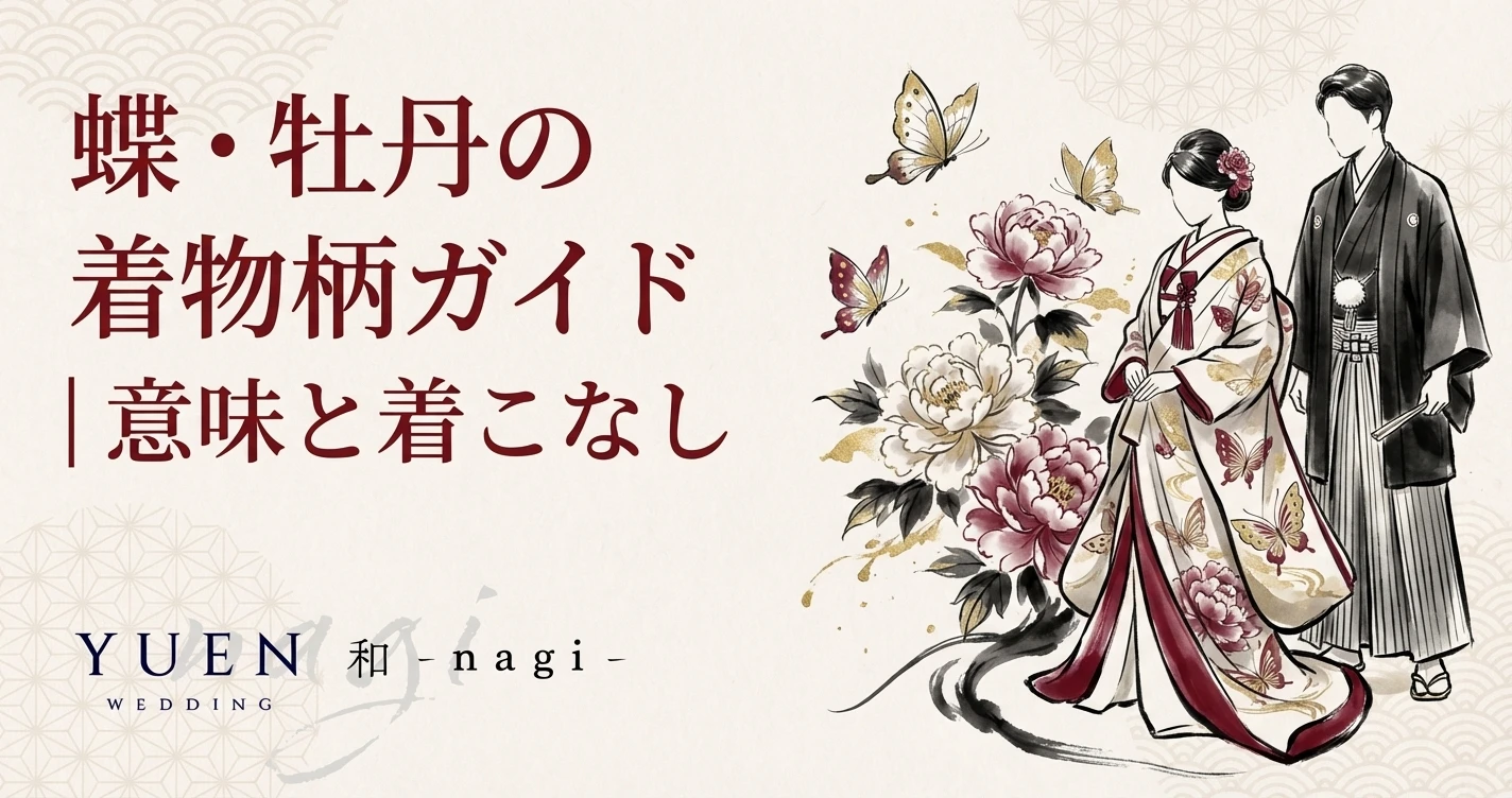 この記事では蝶と牡丹それぞれの柄の意味・由来、着用に適した季節やシーン、帯や小物とのコーディネートまで詳しく解説します。着物の柄全般については着物の柄一覧|季節別・吉祥文様の意味と選び方でまとめていますので、あわせてご覧ください。
