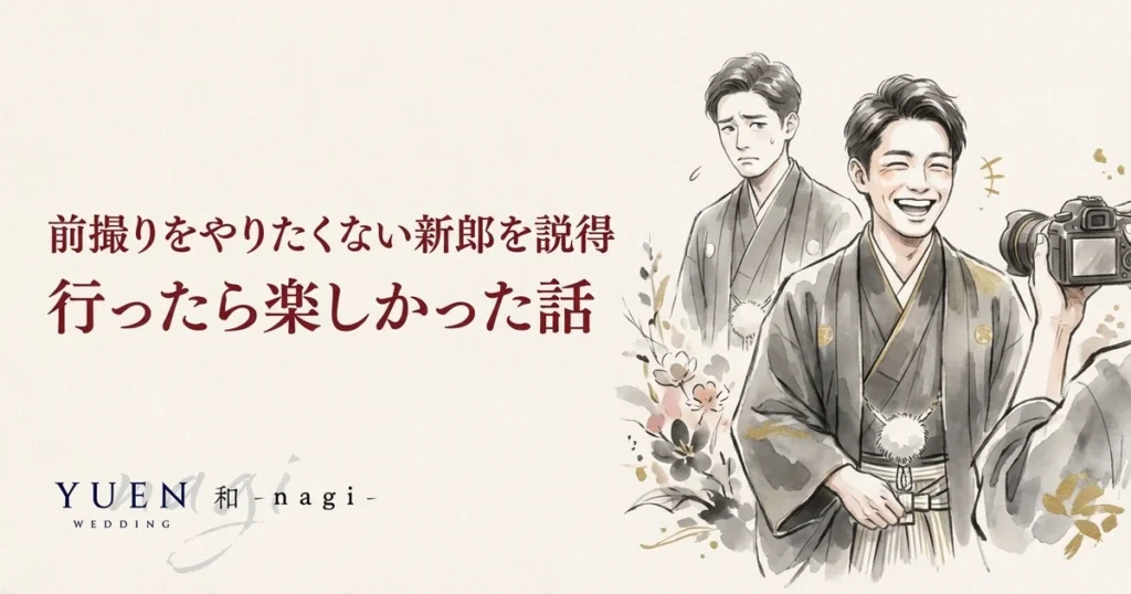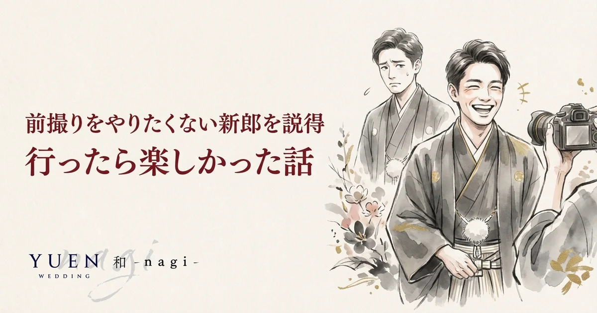 新郎が前撮りを嫌がる理由にはいくつかのパターンがあり、それぞれに有効なアプローチが異なります。この記事では、新郎が「やりたくない」と感じる本音を4つに分類し、具体的な伝え方や環境の選び方を紹介します。紋付袴の格好良さや、セルフフォトのハードルの低さなど、新郎の心を動かすポイントも解説します。「行ったら楽しかった」に変わるための道筋を一緒に考えてみましょう。