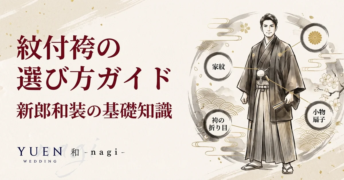 結婚式やフォトウェディングの和装といえば花嫁衣装に注目が集まりがちですが、新郎の「紋付袴(もんつきはかま)」も実はこだわりどころの多い衣装です。「黒以外にも選べるの?」「サイズ選びのポイントは?」「新婦の衣装とどう合わせる?」——この記事では、新郎が紋付袴を選ぶ際に押さえておきたいポイントを網羅的にまとめました。