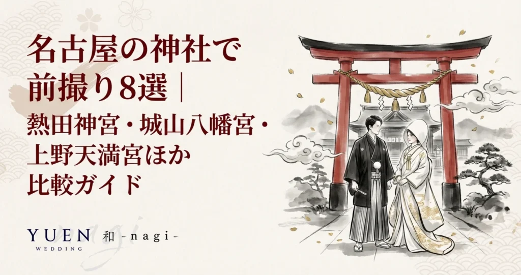 名古屋で和装の前撮りを検討しているカップルへ。名古屋には熱田神宮をはじめ、城山八幡宮、上野天満宮など、和装撮影にふさわしい由緒ある神社が数多くあります。