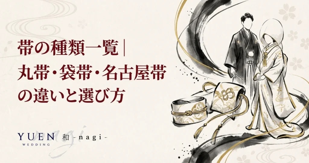 帯の種類と格の関係を知っておくと、着物コーディネートの幅がぐっと広がります。結婚式や前撮りではプロの着付け師が帯選びもサポートしてくれますが、基本知識があると衣裳選びの打ち合わせがスムーズに進みます。