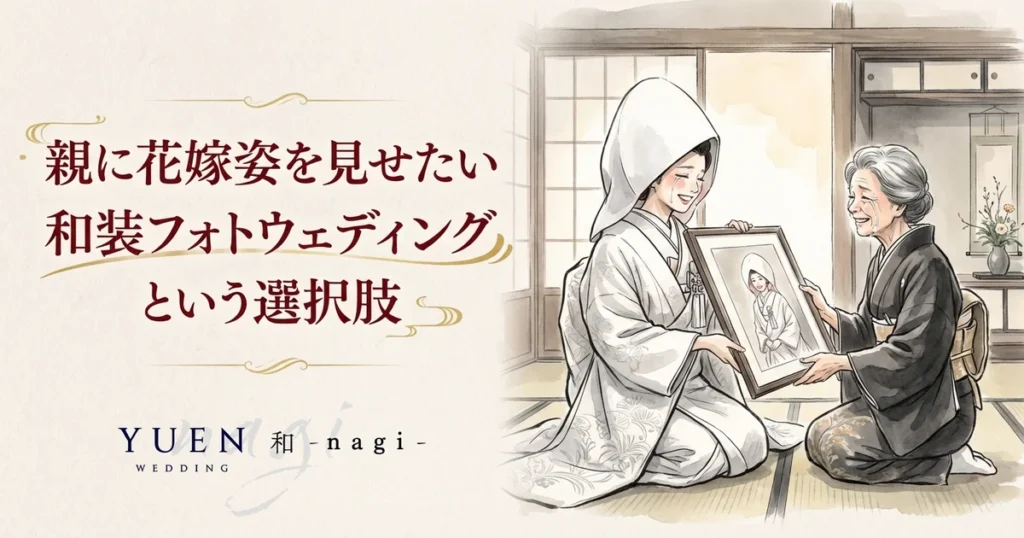 この記事では、結婚式をしなくても親に花嫁姿を見せたいと考えている方に向けて、和装フォトウェディングを中心にその具体的な方法を紹介します。