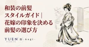 和装に似合う前髪スタイルを徹底解説。白無垢・色打掛・引き振袖別のおすすめ前髪から、顔型別の選び方、セルフアレンジのコツまで、花嫁の印象を決める前髪を紹介。...