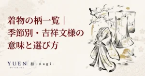 結婚式の着物を選ぶとき「どんな柄がふさわしいのだろう」と迷ったことはありませんか。着物の柄にはそれぞれ意味があり、結婚式という特別な場にふさわしい「吉祥文様」と呼ばれる縁起の良い柄が数多く存在します。...