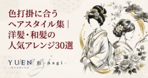 色打掛に似合う髪型を徹底解説。洋髪・和髪の人気スタイル30選から、顔型別の選び方、髪飾りとの組み合わせまで、色打掛を美しく着こなすヘアスタイルガイド。...