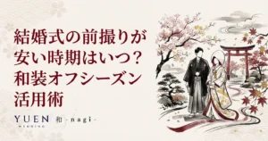 結婚式の前撮りが安い時期を徹底解説。和装前撮りのオフシーズン活用法、平日撮影のメリット、費用を抑えるコツを紹介。賢く予算内で理想の1枚を叶えましょう。...