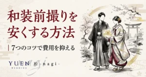 和装前撮りの費用を安く抑える7つの方法を解説。平日撮影、オフシーズン、セルフフォトなど、予算を抑えながら満足度の高い前撮りを実現するコツを紹介。...